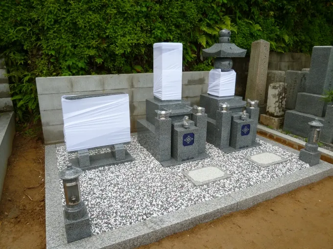 巻き石も無く、夫婦墓が立ち並ぶお墓を、建て替えリフォームといったような施工です。